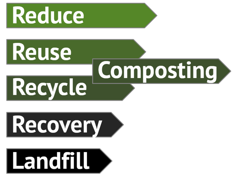 We believe that if we place home composting into the 'Reduce, Reuse, Recycle, Recovery, Landfill' waste hierarchy model (right) then it would sit above recycling because it represents a better way of getting rid of our waste as it needs no trucks or energy intensive processes.