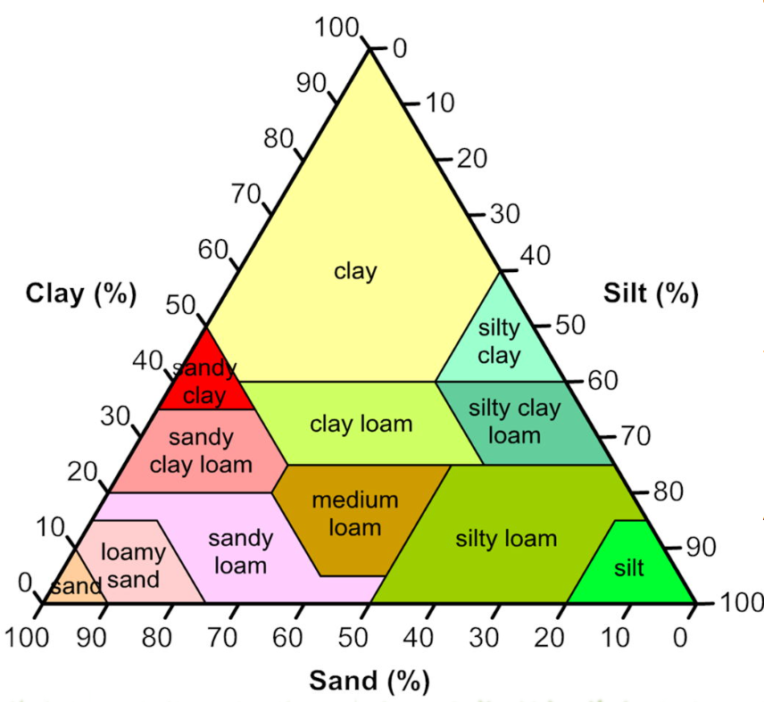 Soil texture refers to the size of the fundamental particles that are present in the soil and is typically classified as clay, sand or silt. The ideal soil structure is called Loam which is comprised of roughly equal quantities of sand and silt with a smaller percentage of clay. Identifying the soil texture will give you a good indication of the type of soils you have.