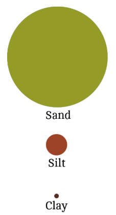 Silt particles sit between sand and clay in size. A loam soil is a roughly equal mixture of all 3 particle types and gives a good, crumbly, workable soil that has good water retention and nutrient holding capacity and is considered good for growing in.